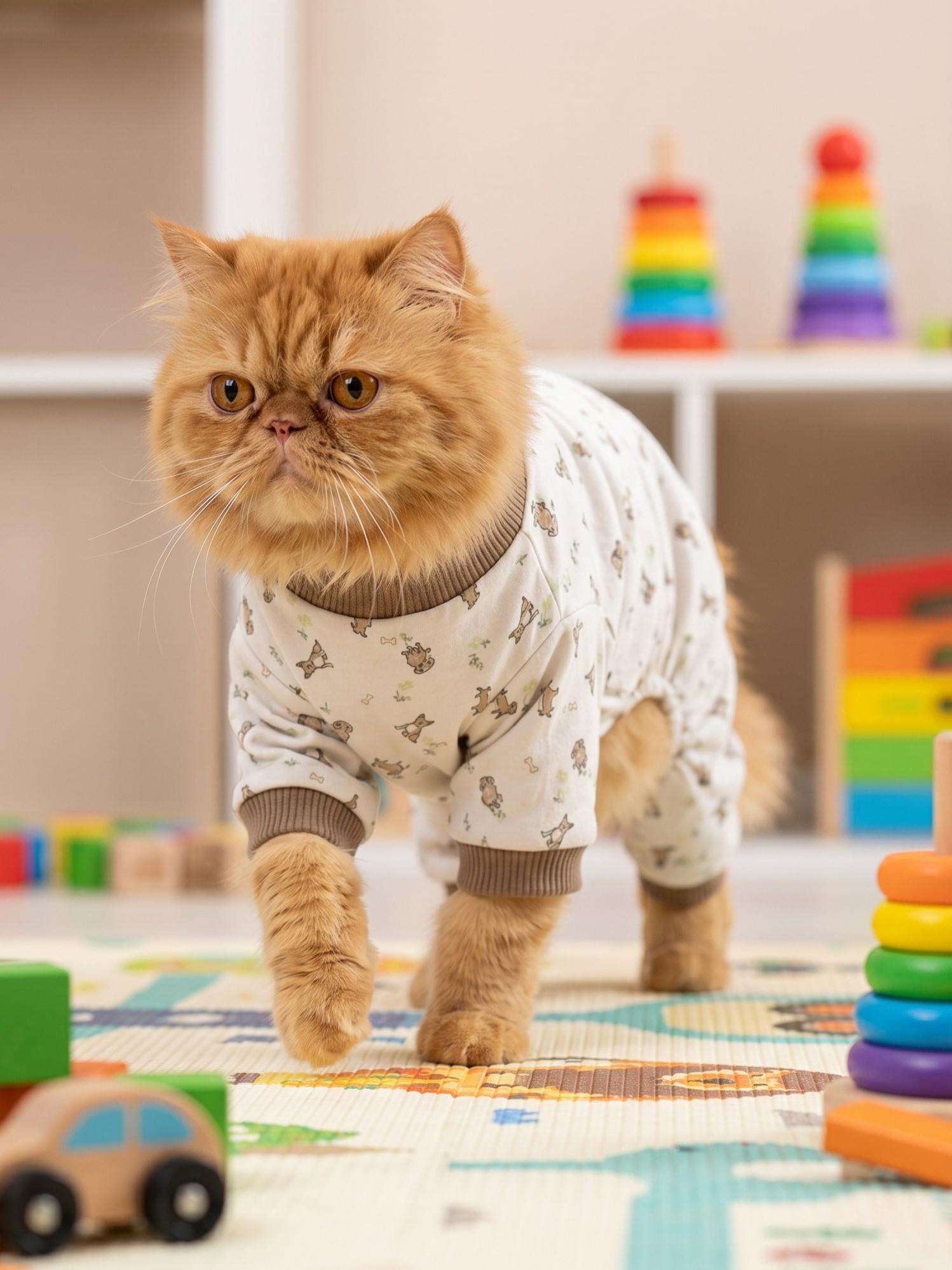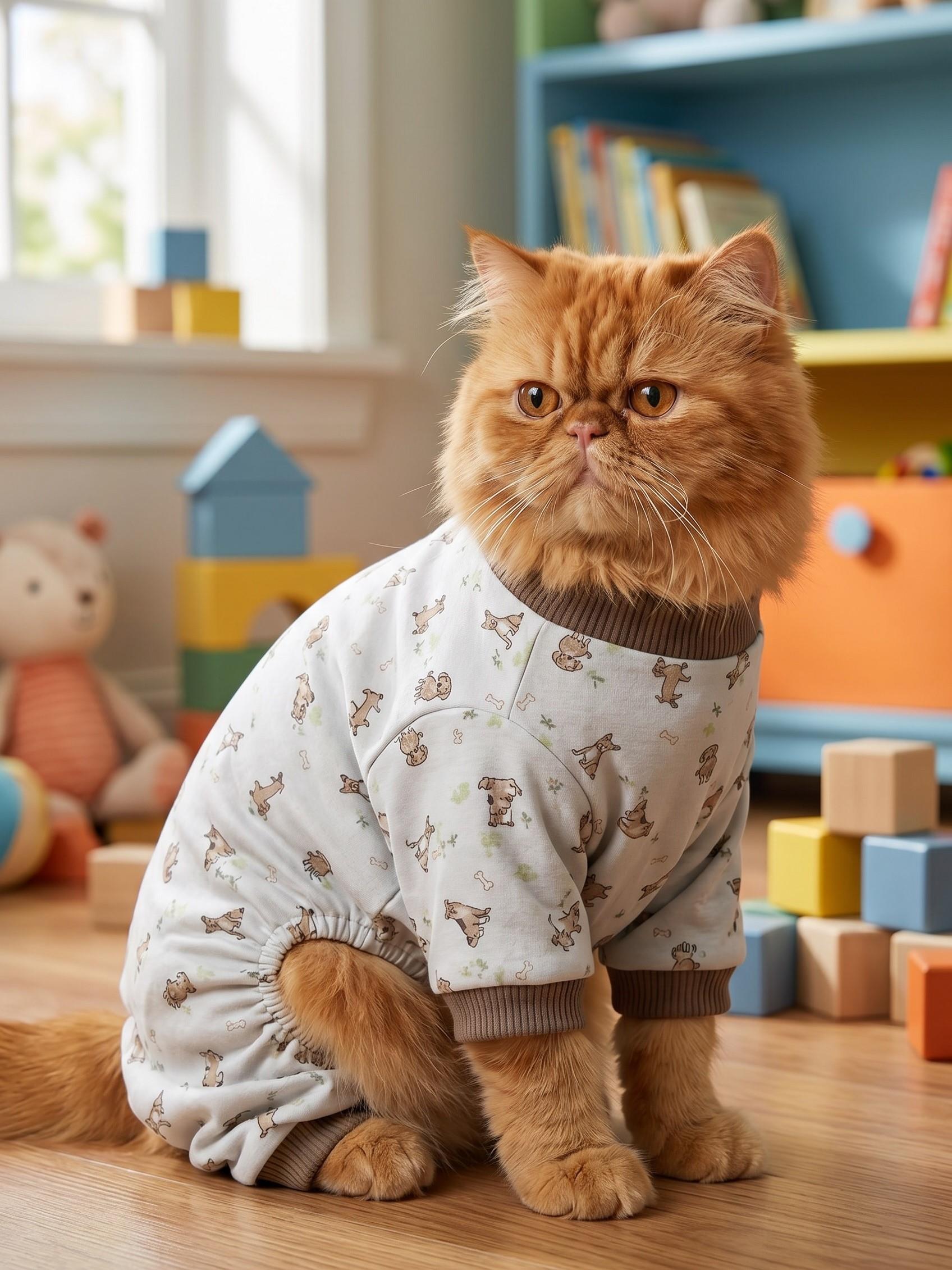 kedi tulumu, kedi pijaması, desenli kedi tulumu, pamuklu kedi kıyafeti, kedi uyku tulumu, cat pajama set