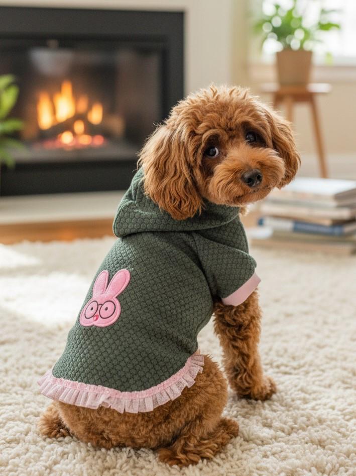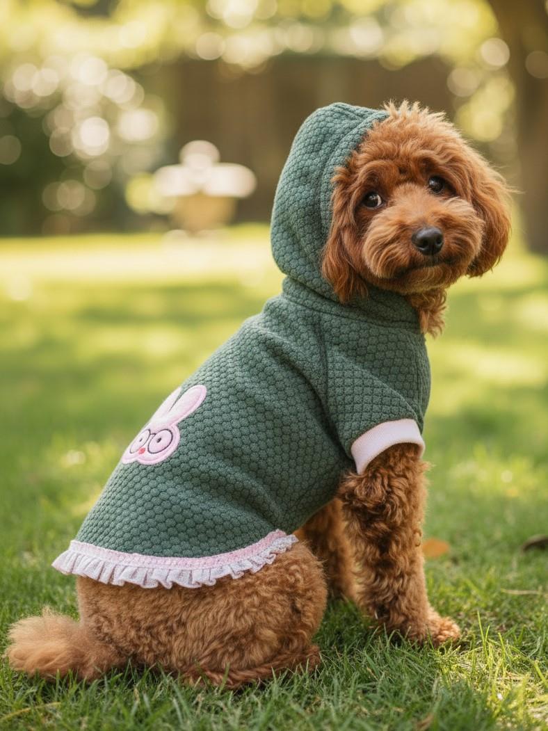 Sevimli tavşan figürü ve fırfır detaylarıyla tasarlanan BunnyPop Kapüşonlu Köpek Elbisesi, minik dostunuz için hem şık hem de konforlu bir seçimdir. Yumuşak dokulu kumaşı sayesinde serin havalarda sıcak tutar, hafif yapısıyla gün boyu rahat kullanım sağlar.