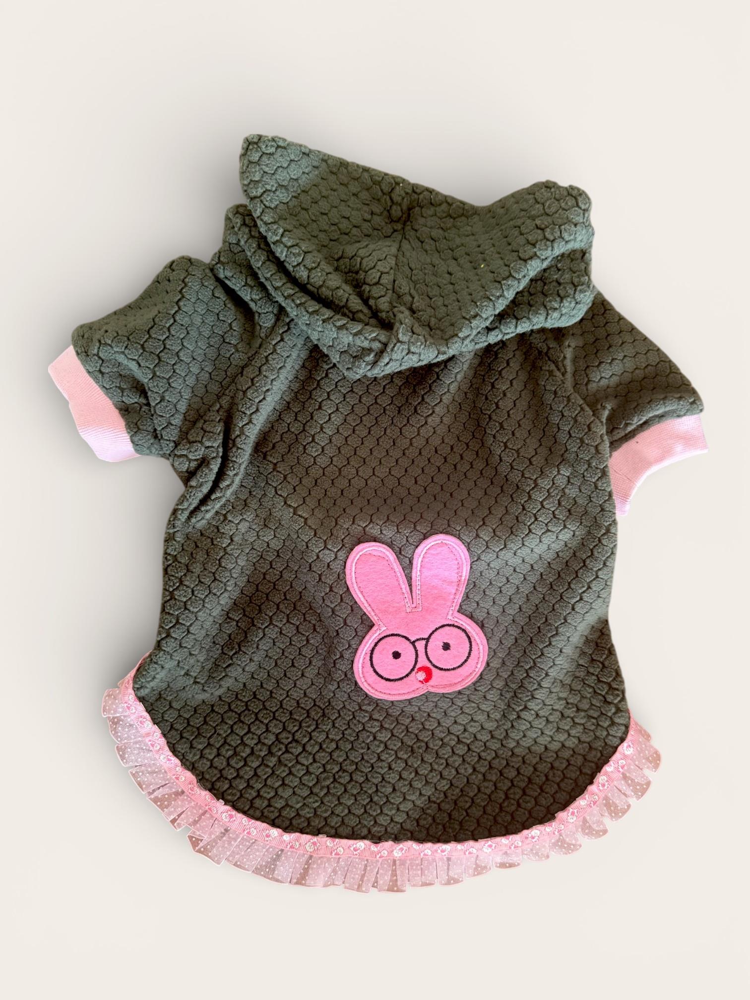 BunnyPop Kapüşonlu Köpek Elbisesi – Yeşil Pembe