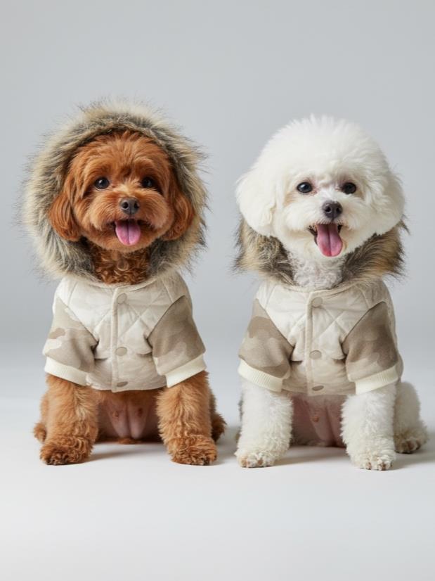 Creamy Camo Kamuflaj Desenli Krem Rengi Köpek Montu Kışlık Ceket