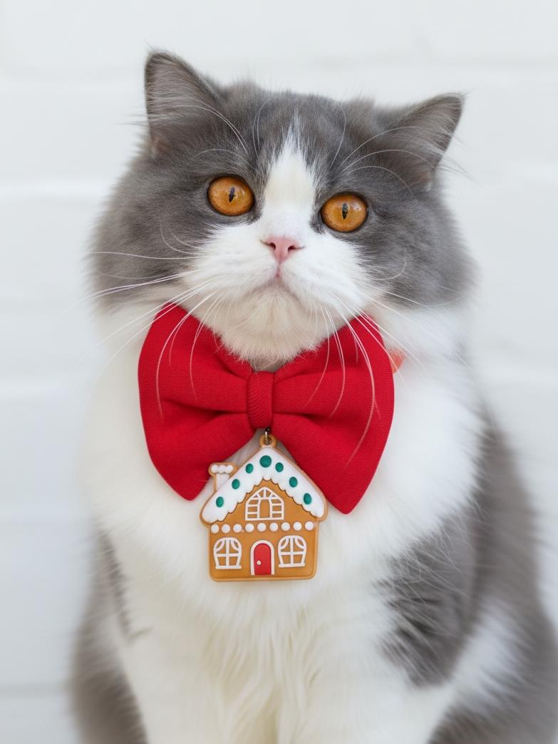 GingerHome Kedi Papyon Tasması | Kırmızı Fiyonk Boyun Aksesuarı | Noel Temalı Kedi Süsü