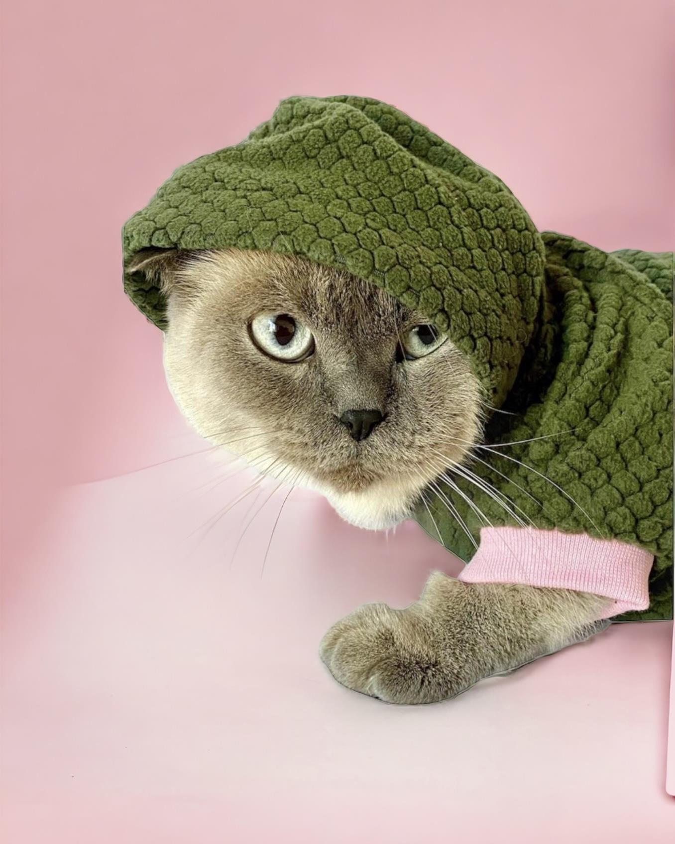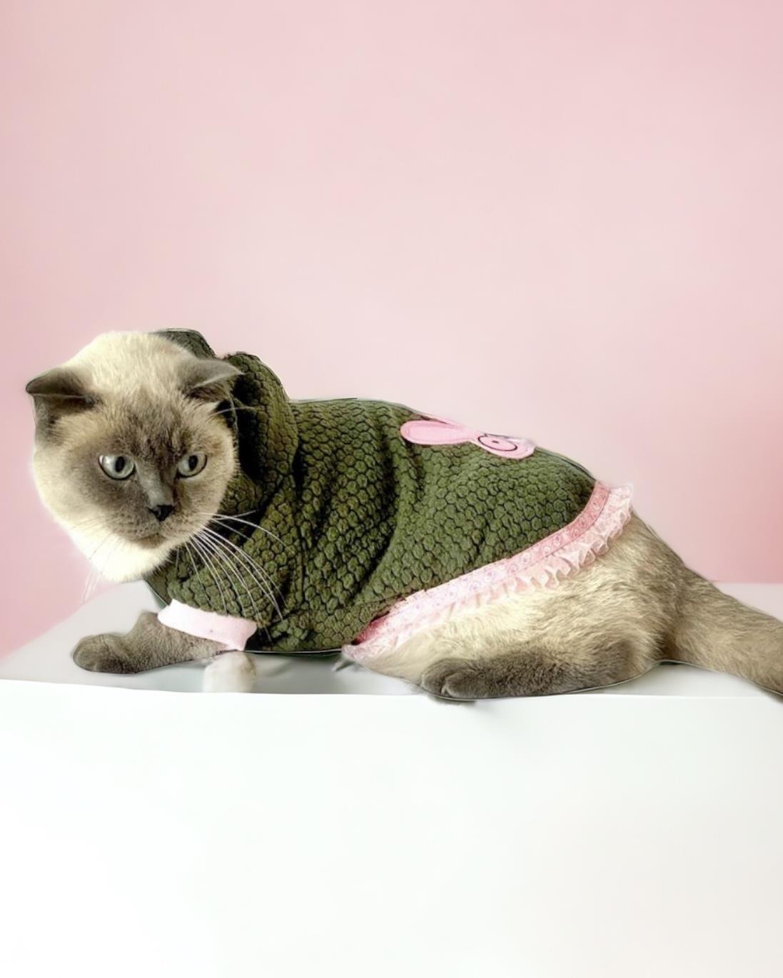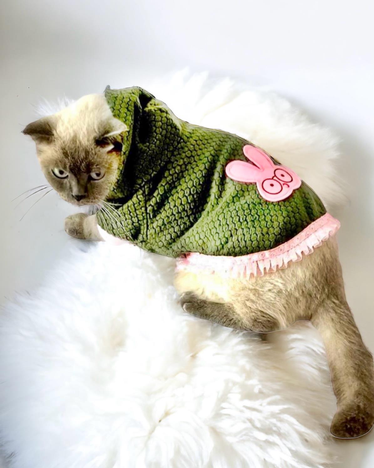 Greenco Bunny Kapsonlu Sweatshirt Kedi Elbisesi Süeteri Kedi Kıyafeti