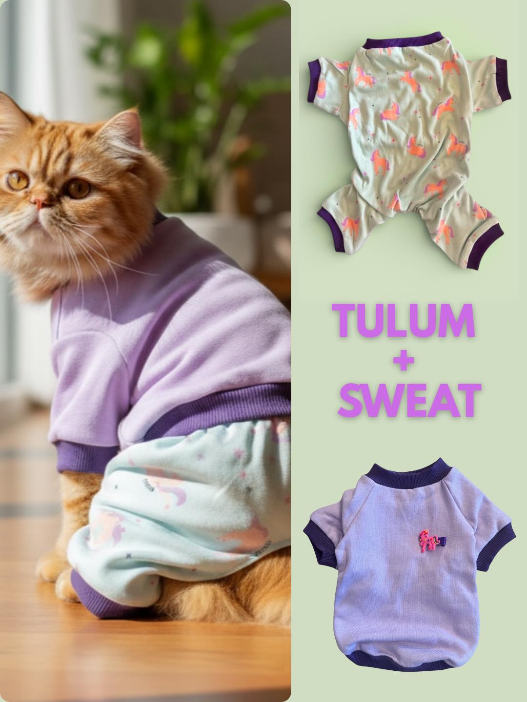kedi tulum, kedi sweat, kedi kıyafet seti, unicorn desenli kedi kıyafeti, po