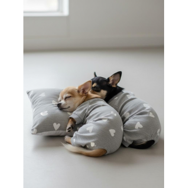 Kemique Soft Hearts Köpek Uyku Takımı | Pamuklu Penye Köpek Tulumu ve Mini Yastık | Küçük Irklar İçin | Tüy Dökülmesini Azaltır