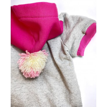 Pink PON Gri Kapşonlu Sweatshirt Köpek Kıyafeti 2XL (5 -6,5 Kg )