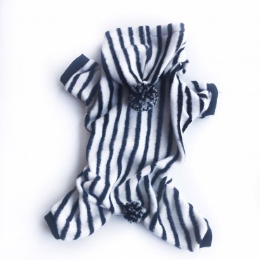 PON PONLU ÇİZGİLİ SİYAH BEYAZ KÖPEK TULUMU