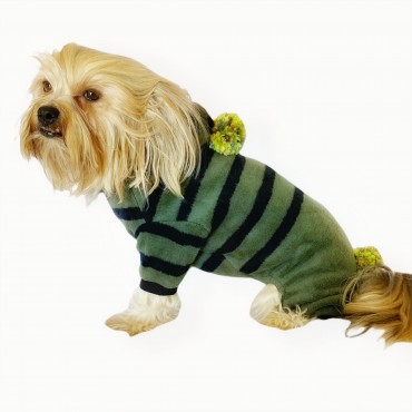 Ponponlu Yeşil Siyah Çizgili Köpek Tulumu Köpek Kıyafeti