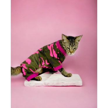Pinky Camouflage Penye Tulum Kedi Tulumu Kedi Elbisesi