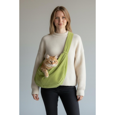 Yeşil Pastel Güderi Dokulu Kedi Taşıma Çantası – Emniyet Kemerli