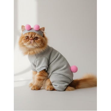 Bunny Pom Kulaklı Kedi Tulumu,Kıyafeti