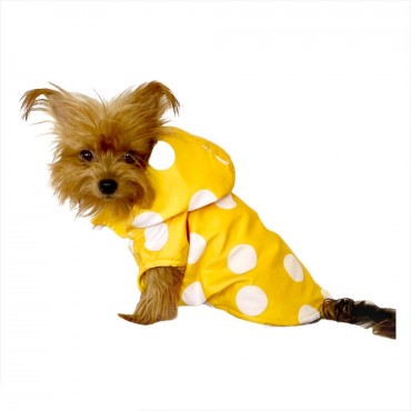 Puantiyeli Sarı Yağmurluk Kapşonlu Köpek Yağmurluğu