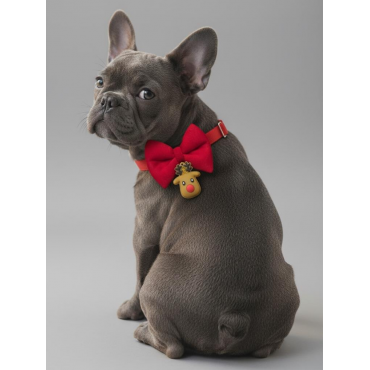 Rudolph Küçük Irk Köpek Papyon Tasması | Kırmızı Fiyonk Boyun Aksesuarı | Noel Temalı Köpek Süsü