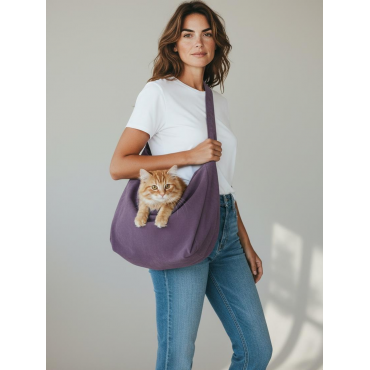 Eflatun Pastel Güderi Dokulu Kedi Taşıma Çantası – Emniyet Kemerli