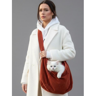 Kiremit Rengi Güderi Dokulu Kedi Taşıma Çantası – Emniyet Kemerli