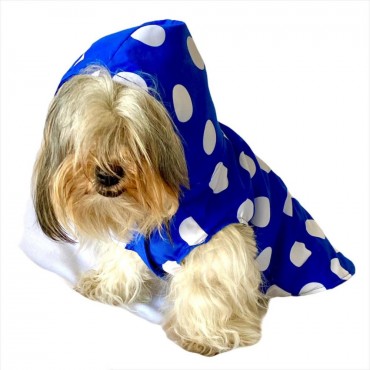 Puantiyeli Mavi Yağmurluk Kapşonlu Köpek Yağmurluğu
