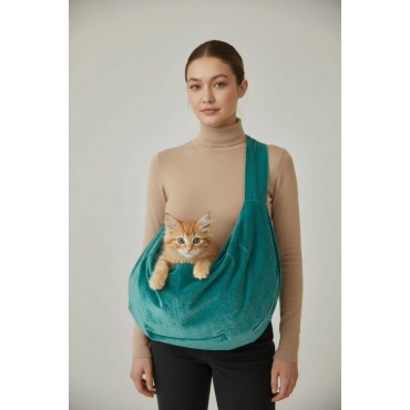 Leke tutmaz Su yeşili Kadife Dokulu Kedi Taşıma Çantası – Emniyet Kemerli