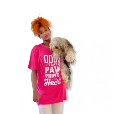Hayvansever Tişört Dogs Leave Paw Prints in Your Heart Pembe