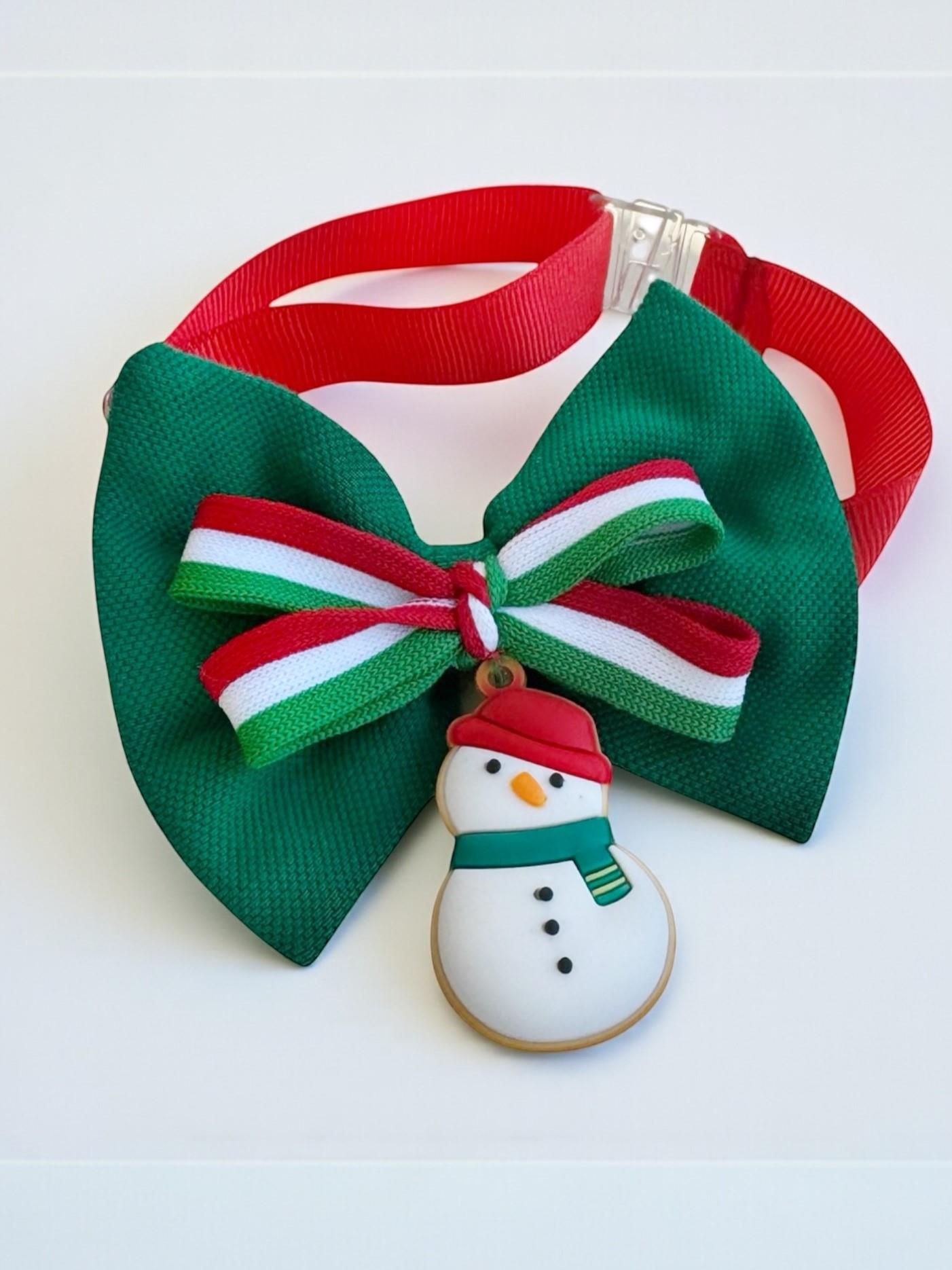 Kardan Adam + Snowman Köpek Papyon Tasması | Yeşil Kırmızı Fiyonk Boyun Aksesuarı | Noel Temalı Köpek Süsü | Orta ve Büyük Irklar İçin