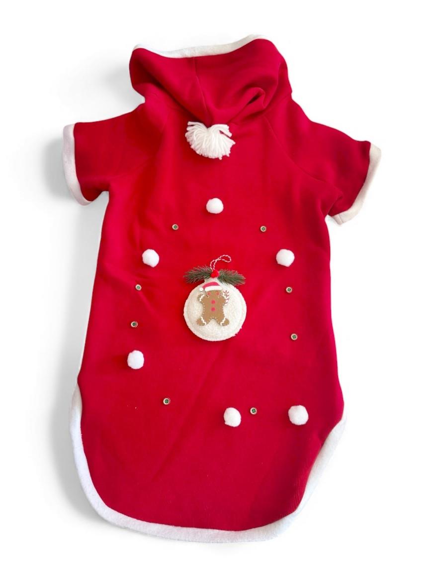 GINGERBREAD MAN Yılbaşı Köpek Kıyafeti | Noel Baba Kapüşonlu Polar Sweatshirt | Orta ve Büyük Irklar İçin