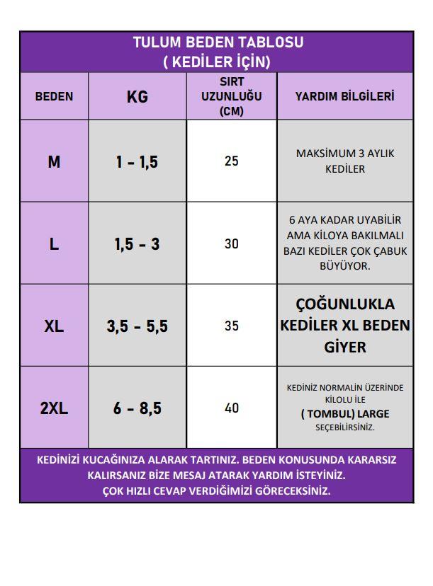 2XL (6 – 8,5 kg) → Sırt: 40 cm