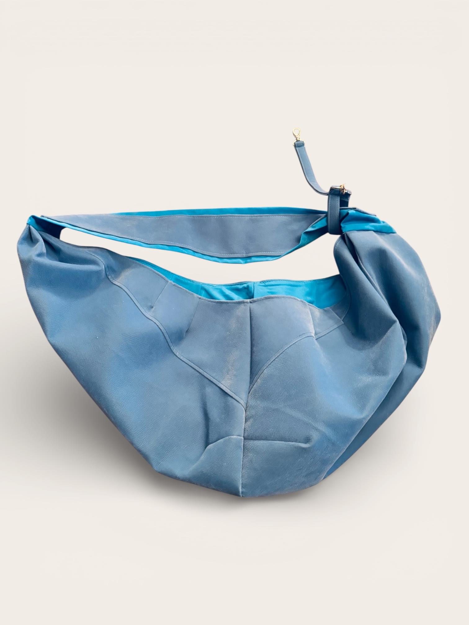 Mavi Pastel Güderi Dokulu  Kedi Taşıma Çantası – Emniyet Kemerli