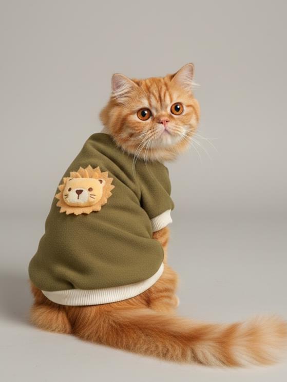 Sırt kısmındaki şirin aslan figürü tasarıma eğlenceli bir görünüm kazandırırken, modern haki rengi hem dişi hem erkek kediler için uygundur. Ev içi kullanımda, mevsim geçişlerinde ve fotoğraf çekimlerinde tatlı bir stil sunar.