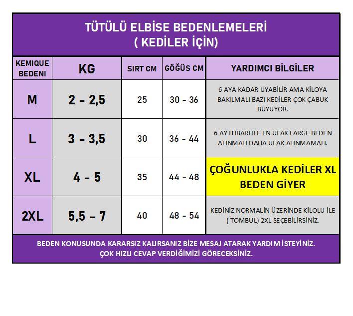 Beden Tablosunu İnceleyin: Aşağıdaki beden tablosunu kullanarak kedinizin kilosuna en uygun bedeni belirleyin.