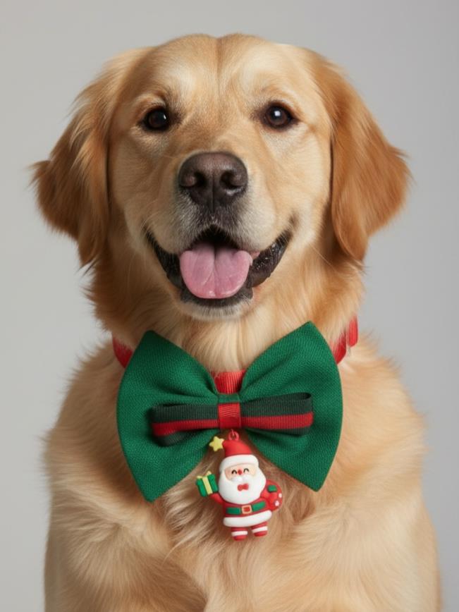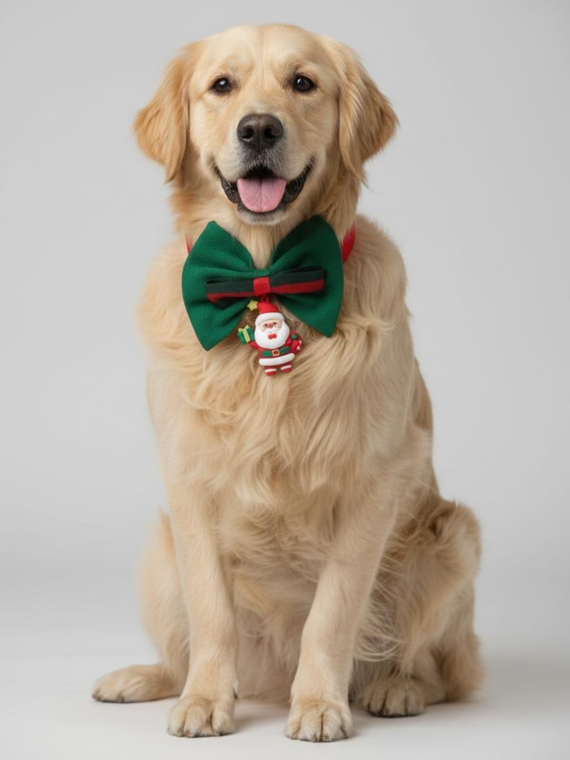Noel Baba Köpek Papyon Tasması | Yeşil Kırmızı Fiyonk Boyun Aksesuarı | Noel Temalı Köpek Süsü | Orta ve Büyük Irklar İçin