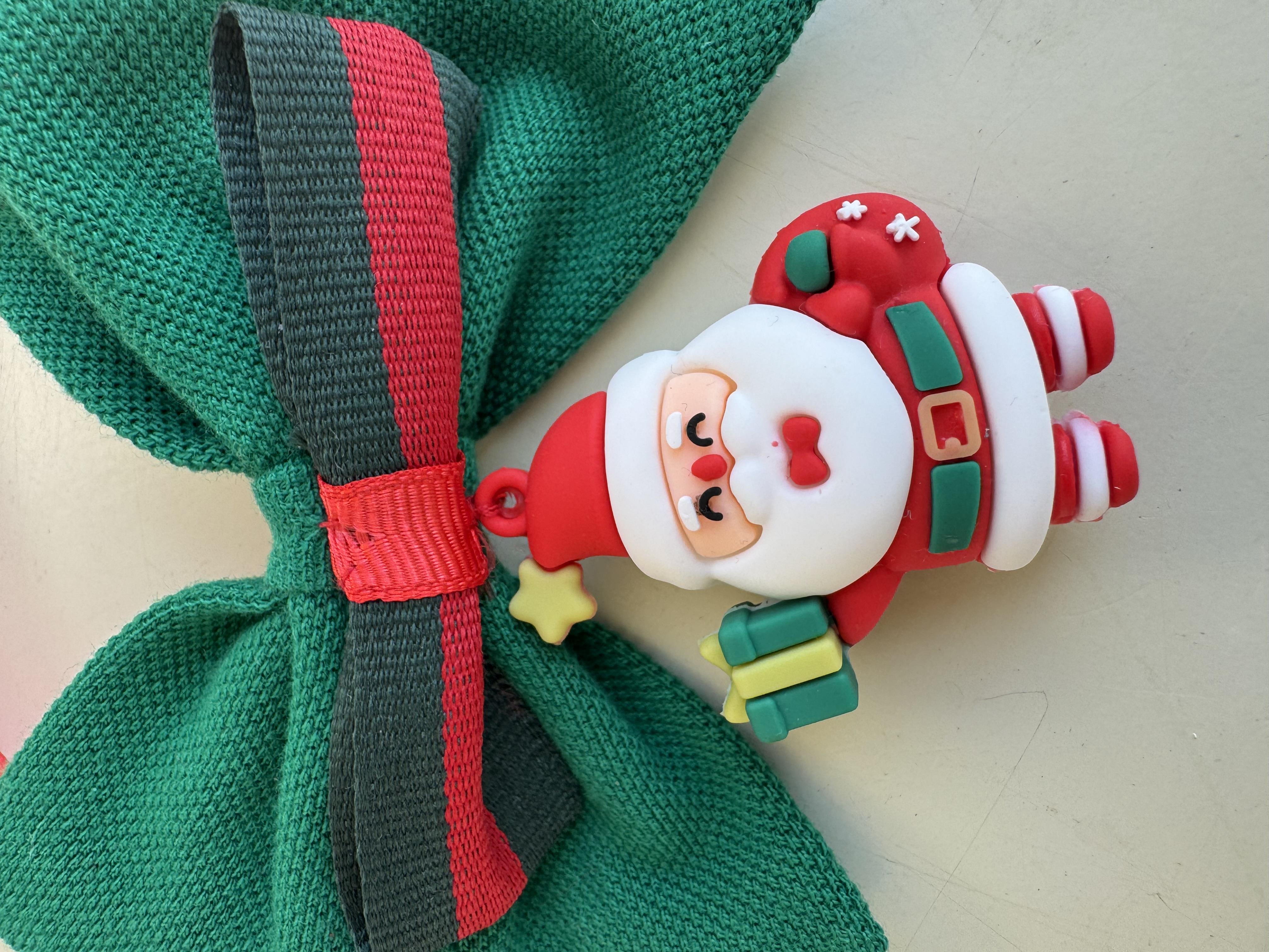 Santa Claus + Noel BabaYılbaşı Ağacı Köpek Papyon Tasması, kırmızı fiyonk papyon tasarımı, şeker kamışı süs detayı ve yumuşak kumaş dokusuyla köpeğinize zarif bir görünüm kazandırır.