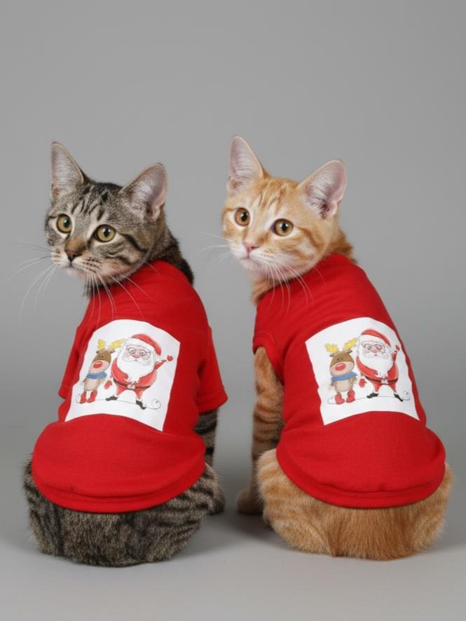 Noel Baba Ve Rudolph Kedi Tişörtü