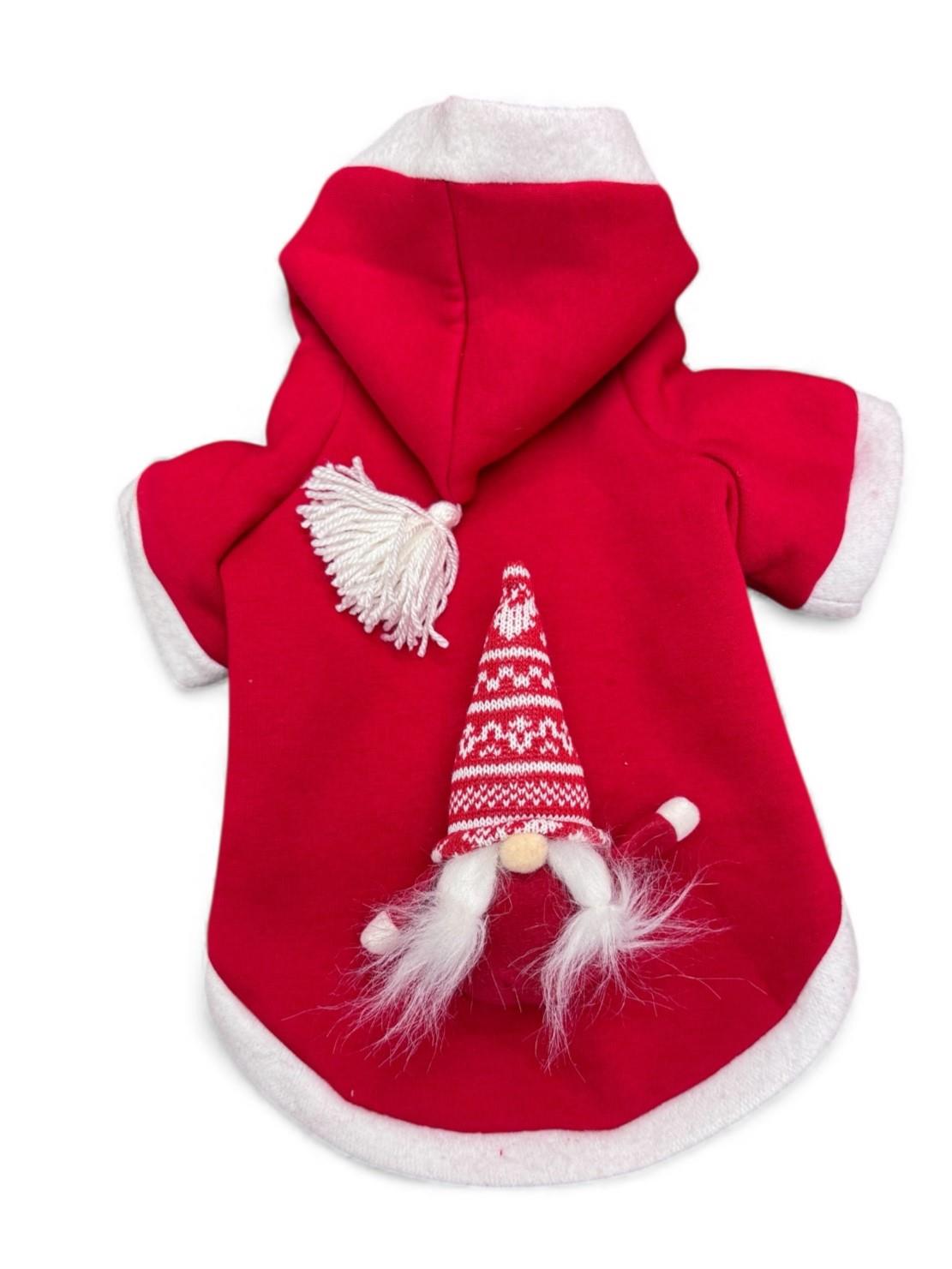 Noel Cücesi Gnome Yılbaşı Köpek Kıyafeti Noel Cücesi Gnome Kırmızı Polar | Kapüşonlu Noel Köpek Sweatshirt | Küçük Irklar İçin Premium