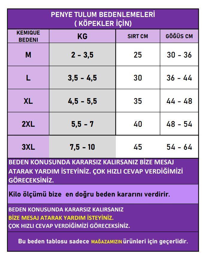 3XL (57,5 – 10 kg) → Sırt Uzunluğu: 45 cm