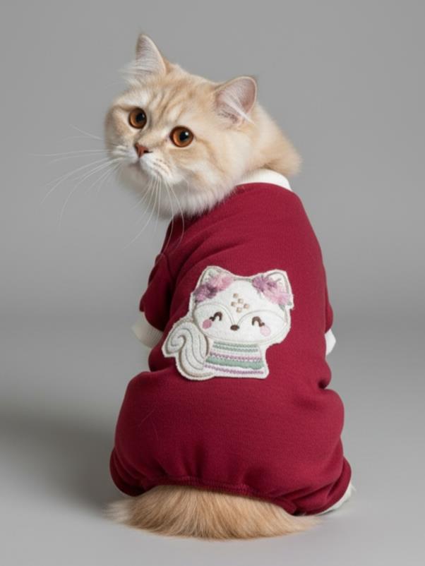 Ruby Foxie kedi tulumu, kediler için konfor, sadelik ve günlük kullanımı bir arada sunan ideal bir kedi pijamasıdır.