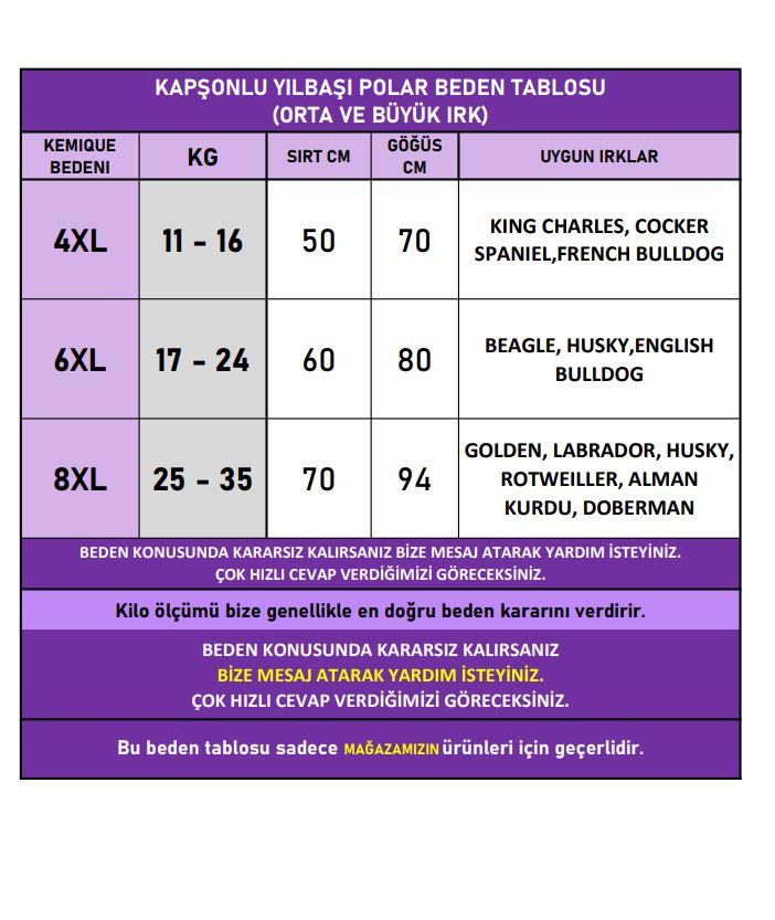 6XL → 17–24 kg | Sırt: 50 cm