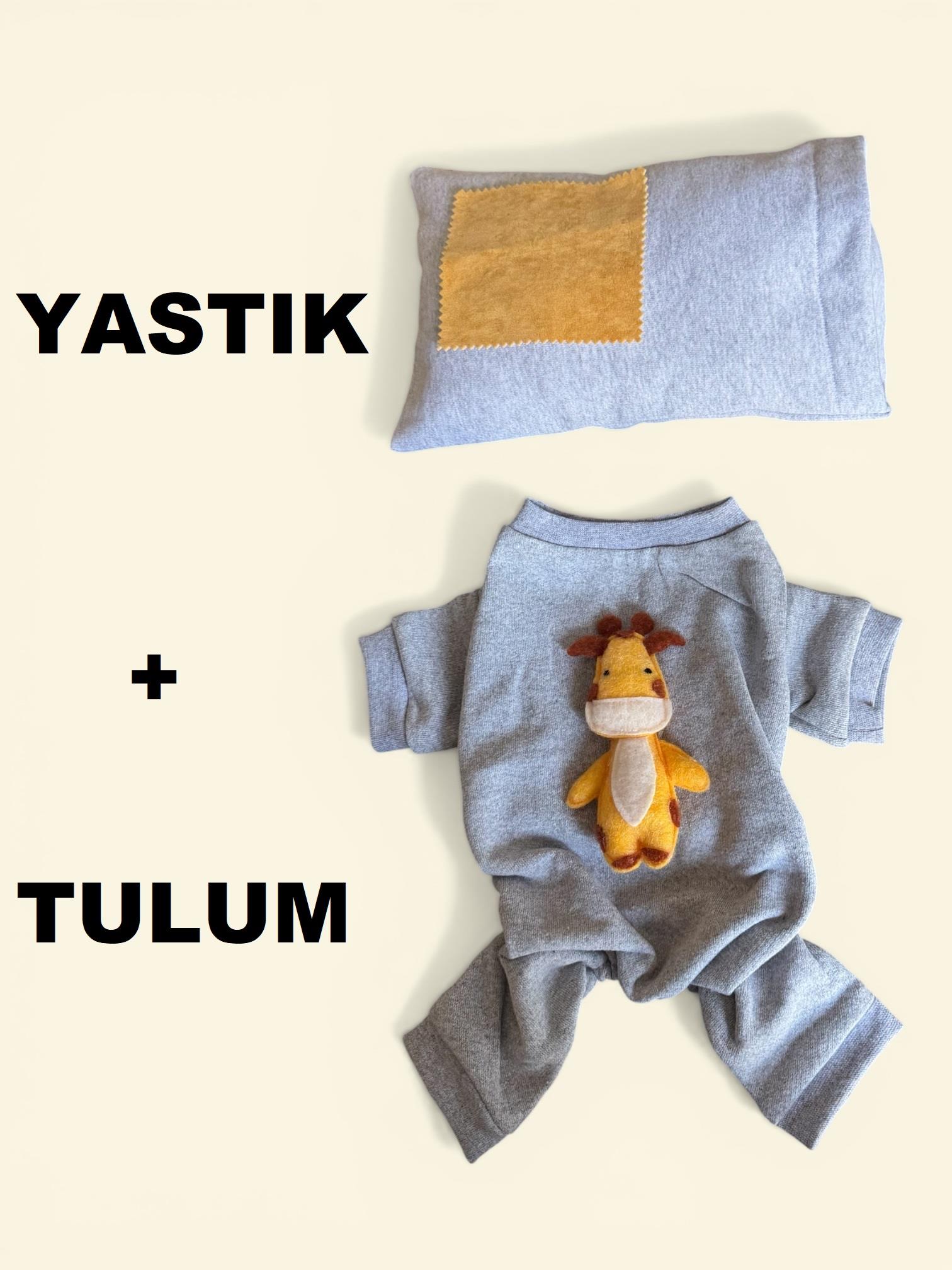 Sevimli Zürafa Köpek Uyku Seti | Penye Köpek Tulum ve Mini Yastık Takımı | Pamuklu | Tüy Dökülmesini Azaltır
