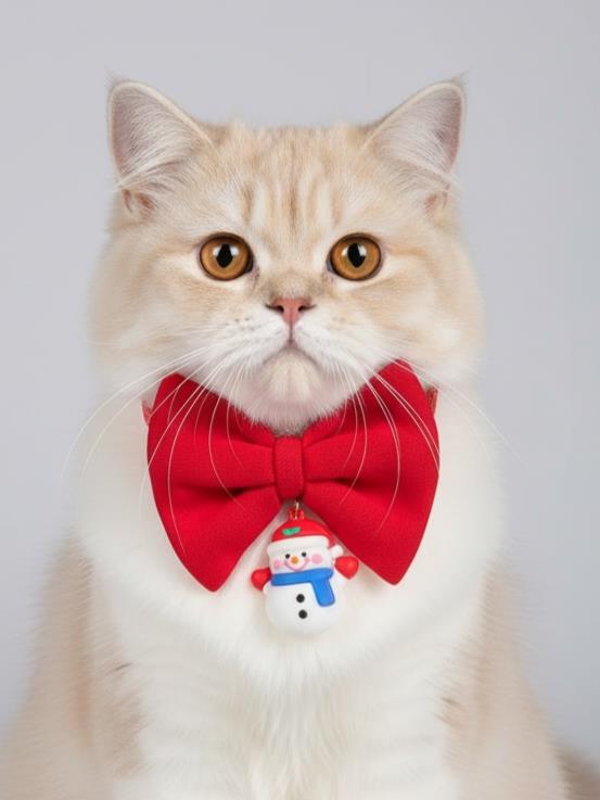 Snowman Kedi Papyon Tasması | Kırmızı Fiyonk Boyun Aksesuarı | Noel Temalı Kedi Süsü