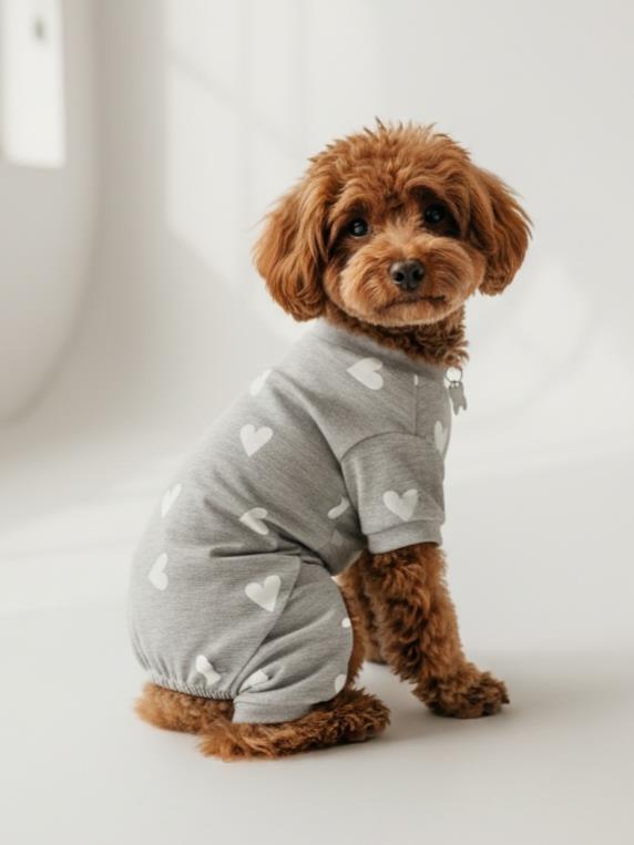 Soft Heart Köpek Tulumu | Pamuklu Penye Köpek Pijaması | Küçük Irklar İçin | Tüy Dökülmesini Azaltır