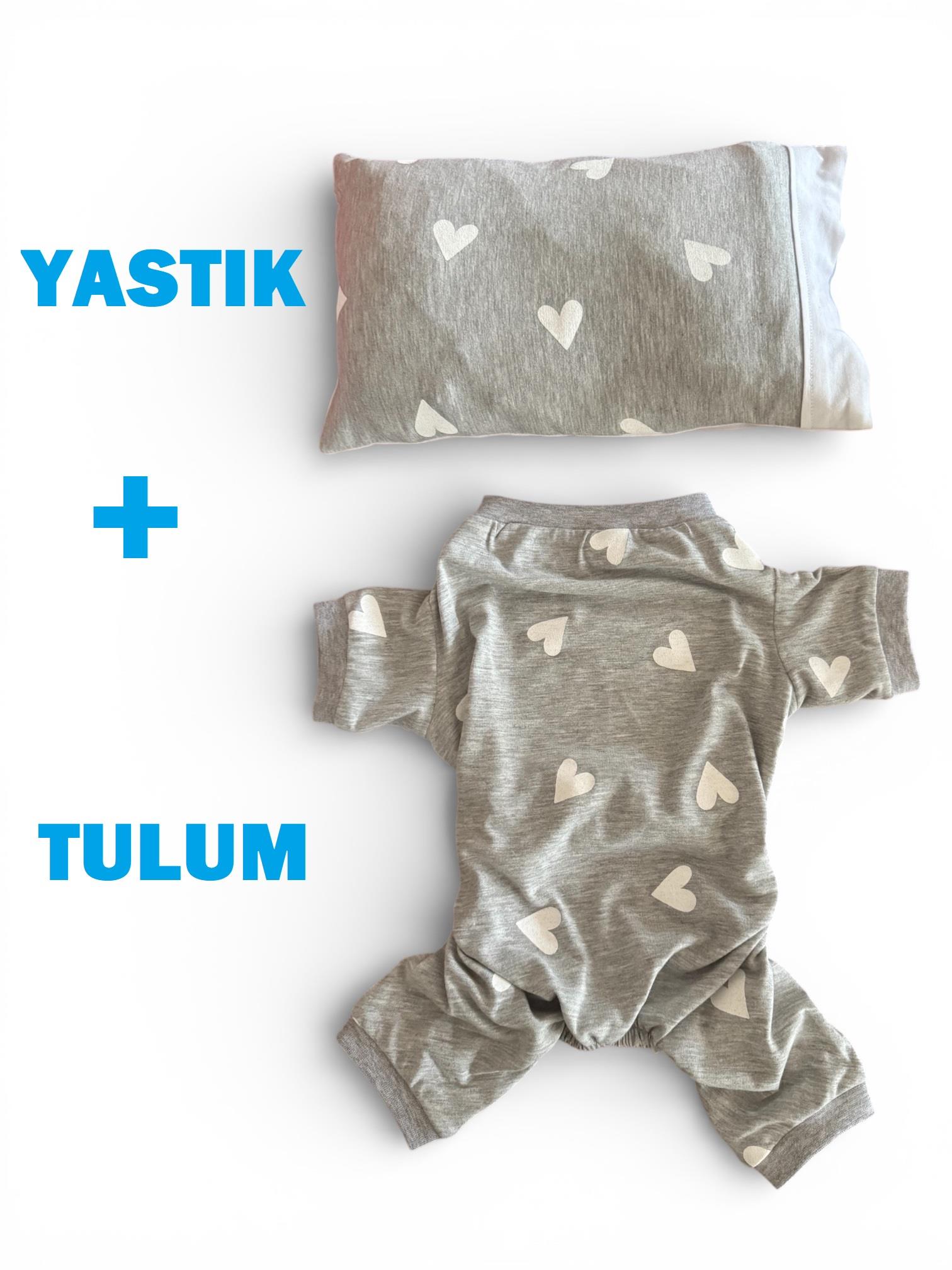 Soft Hearts Kedi Uyku Seti | Penye Kedi Tulum ve Mini Yastık Takımı | Pamuklu | Tüy Dökülmesini Azaltır |