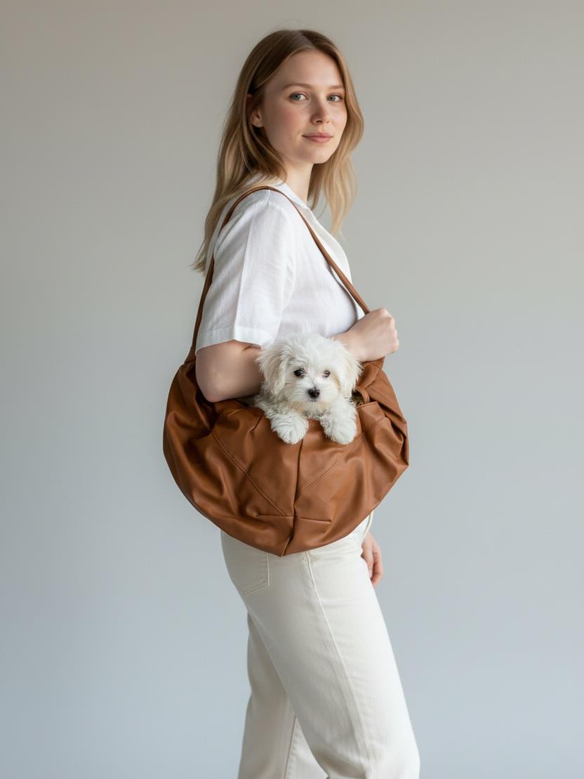 Su Geçirmez Suni Deri Köpek Taşıma Çantası – Emniyet Kemerli, 8 KG’ye Kadar Uygun
