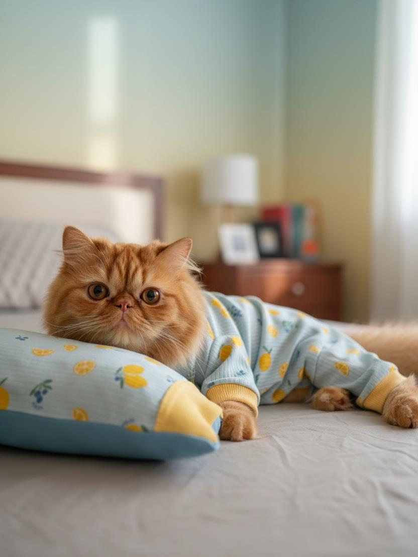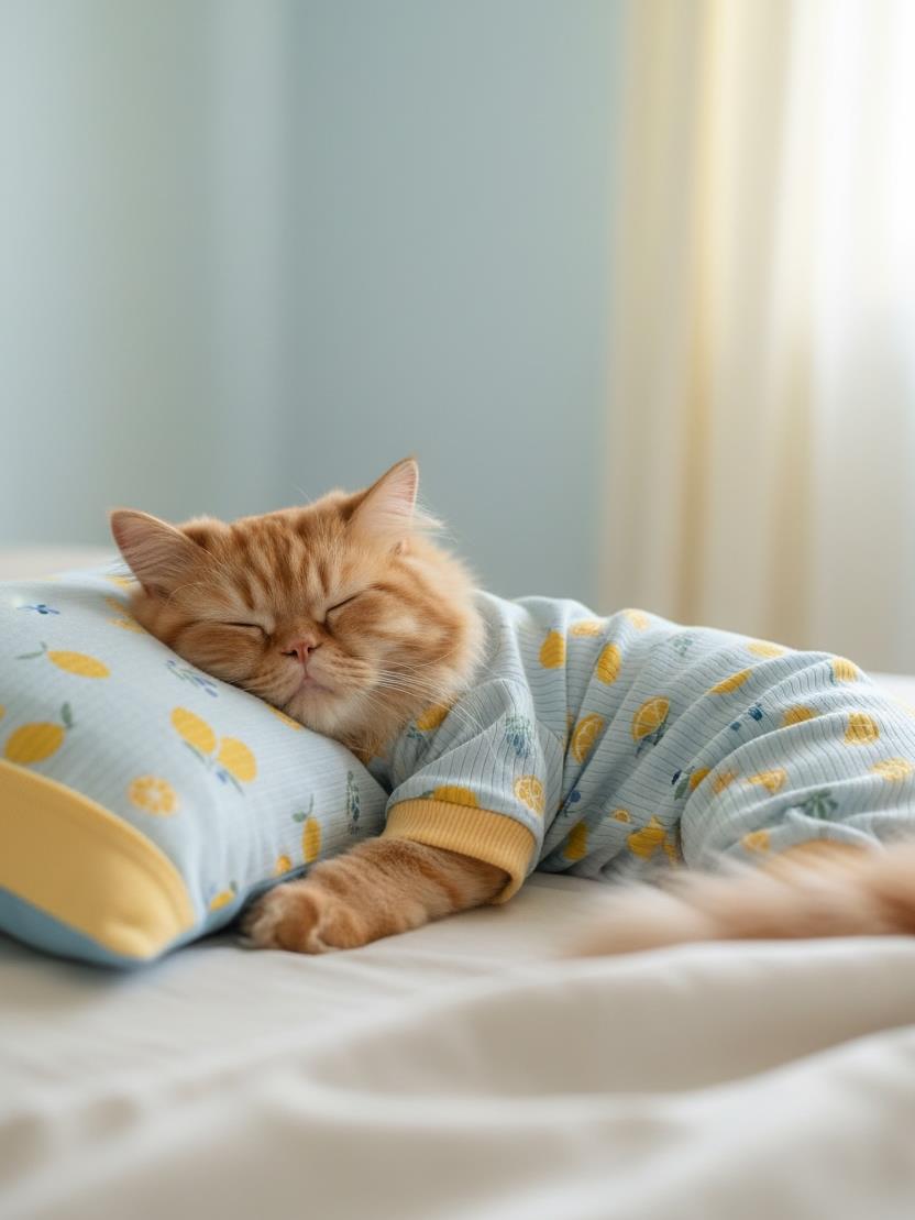Summer Pineapple Uyku Takımı | Pamuklu Penye Kedi Tulumu ve Mini Yastık | Kediler İçin | Tüy Dökülmesini Azaltır