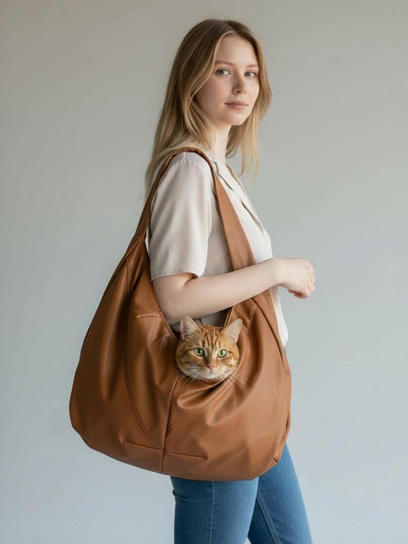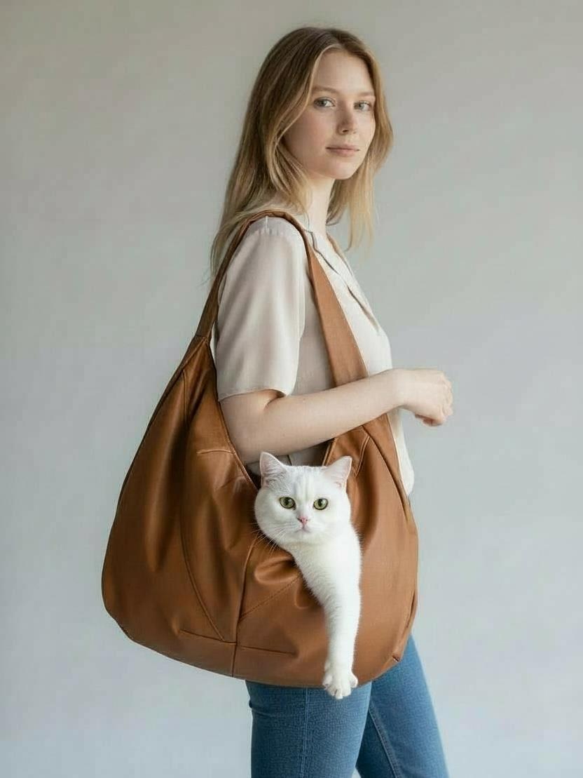 Su Geçirmez Suni Deri Kedi Taşıma Çantası – Emniyet Kemerli, 8 KG’ye Kadar Uygun