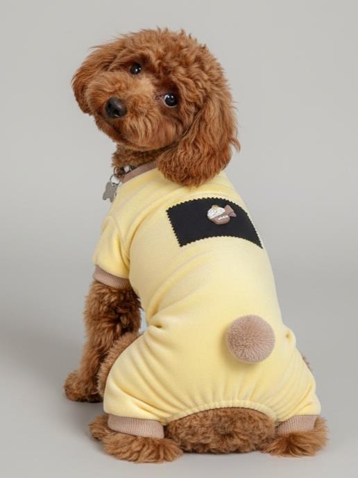 Sunny Cake Pastel Sarı İnce Kadife Köpek Tulum Pijama