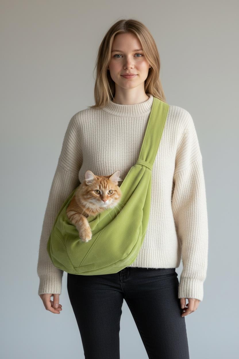 Yeşil Pastel Güderi Dokulu  Kedi Taşıma Çantası – Emniyet Kemerli